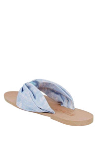 Balmain sky blue and white abstract-print fabric flat thong sandals. 0.25"/5mm heel (approximately) Open toe, blue leather toe thong Slides on Leather sole Available in Sky Blue/White Made in Italy