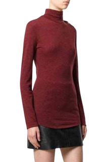 FINAL SALE ThIs burgundy mid-weight wool style fits close to the body and is accented with signature gold press-stud fastenings at the shoulder. Burgundy, mid-weight wool-knit. Roll-neck, long sleeves. Gold-tone metal press-stud fastening roll-neck and shoulder feature Slim-fitting style, falls below the hips. Color: burgundy. 100% wool. Dry clean. Country of origin: France. Fits true to size.