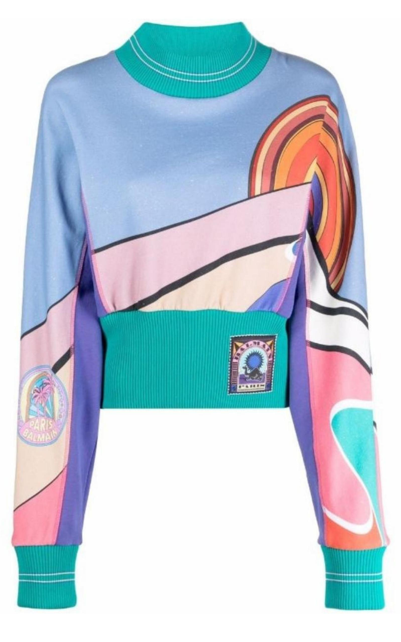 Cropped multicolor cotton sweatshirt