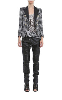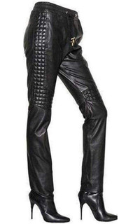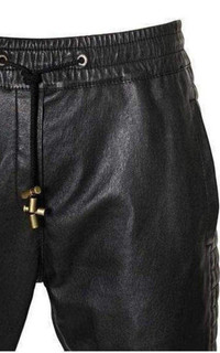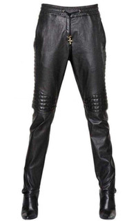 This quilted leather pants tapered through the leg, and sloutchy at the hip, make it a very comfortable piece. Wear it with an animal-print top, a leather jacket and high-heeleds pumps for a rock-and-roll and ethnic look Drawstrings on elasticated waist Quilted panels on sides and knees 100% Lambskin Made in France