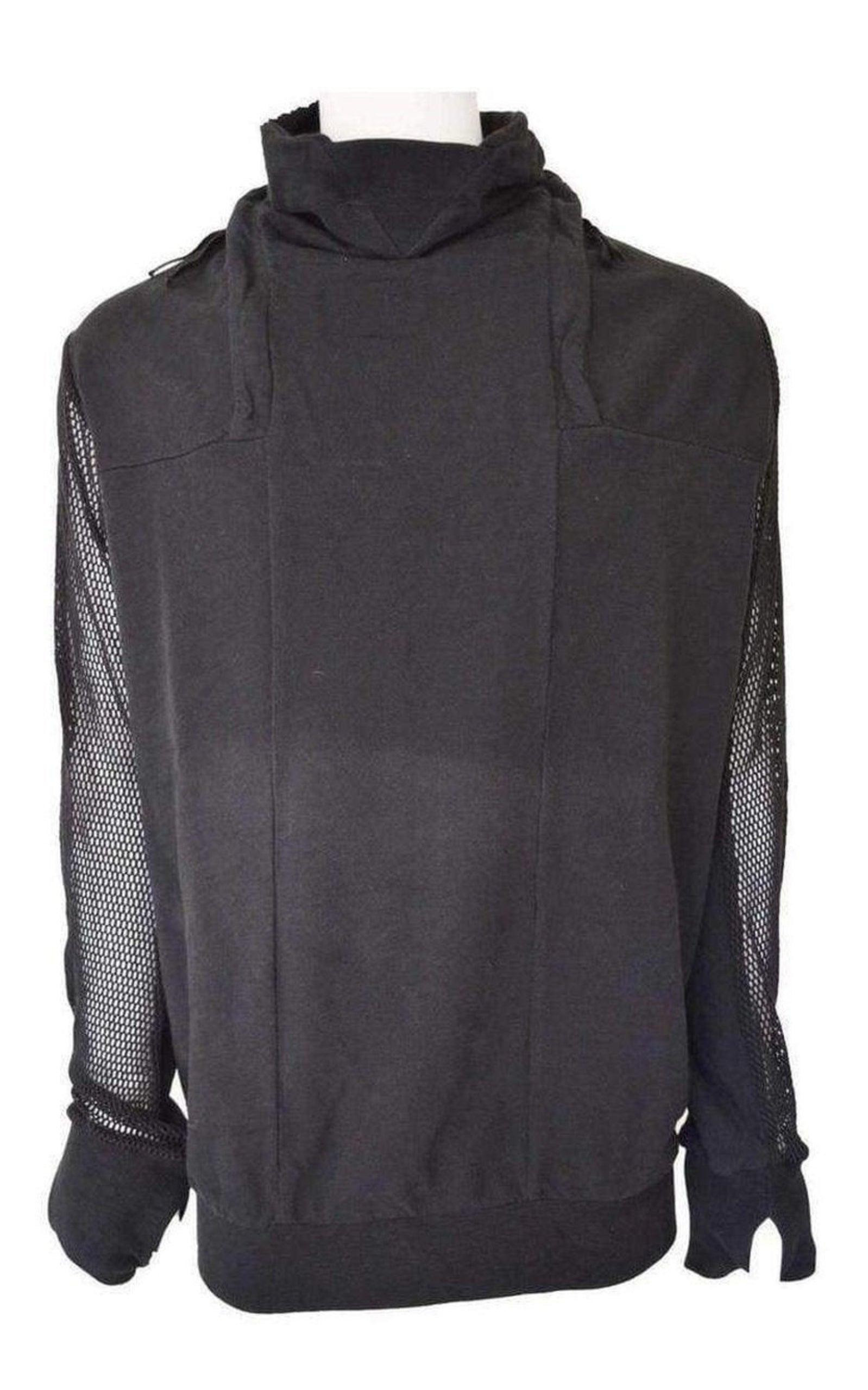 Cotton jumper with adjustable neck. Zip fastening neck closure with inner mesh yoke. Cotton mesh sleeves Thumb openings. Object dyed. Hand made in Spain. 100% Cotton Silver Zipper- 0.6g SILVER 925