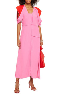 Bottega Veneta demonstrates its creativity with this midi dress with unexpected finishes. In addition to a playful geometric structure, this piece has the ability to subtly highlight the female figure. Two-tone barbie-pink Cut-out detailing Side slits Contrasting panel detail V-neck Rear zip fastening Short sleeves Mid-length Composition: Viscose 100% Dry Clean Made in Italy