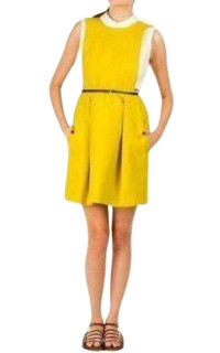 Pinafore dress with open back. Round neck. Button-down straps in back. Pleated skirt. Side pockets. Ribbon waistband in back. Removable belt. Zipper closure in back. Lined. Shell: 100% cotton. Lining: 100% polyester Made in Europe