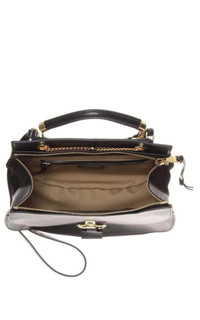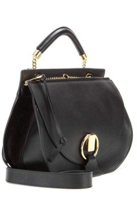 Goldie shoulder bag. Detachable, adjustable shoulder strap Zipped top Front flap pocket Back slot pocket Calf leather Fabric lining Internal zipped pocket Height 23cm-9" Max. width 32cm-12.5" Depth 12cm-4.5" Min. length shoulder strap 50cm-19.5" Max. length shoulder strap 110cm-43.5" Made in Italy