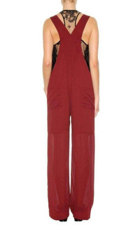 Burgundy sheer panel jumpsuit from Chloé Spaghetti straps Buckle fastenings Front flap pocket Side button fastening Two back patch pockets Straight leg Sheer panels Long length. True to fit. Composition: Viscose 100% Dry Clean Only