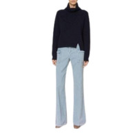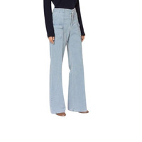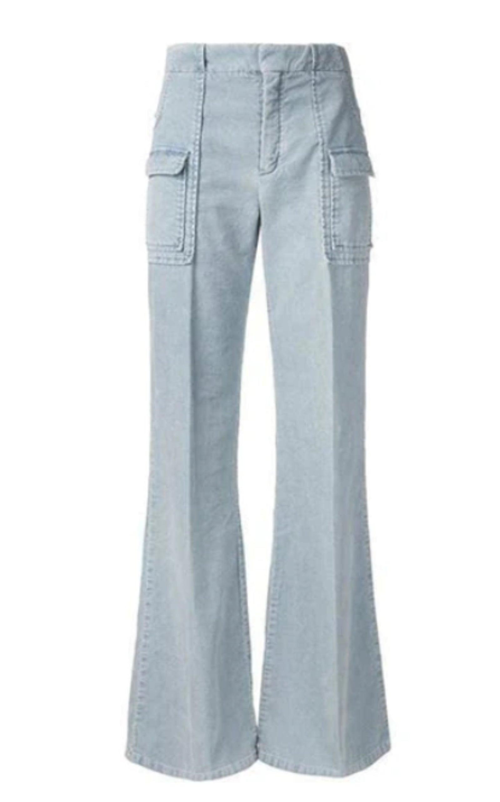 Blue cotton corduroy wide leg trousers Mid rise Waistband with belt loops Ribbed design Two inset pockets to the sides and pouch pockets. Cotton 100%