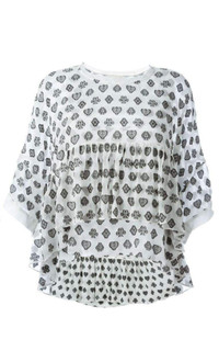 Black and white silk 'Fil Coupé' two overlapping tops Ribbed round neck Wide three quarter length sleeves Layered design Graphic print Loose fit. Composition: Silk 100% Lined: Silk 78%, Polyester 22% Dry clean only
