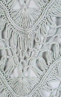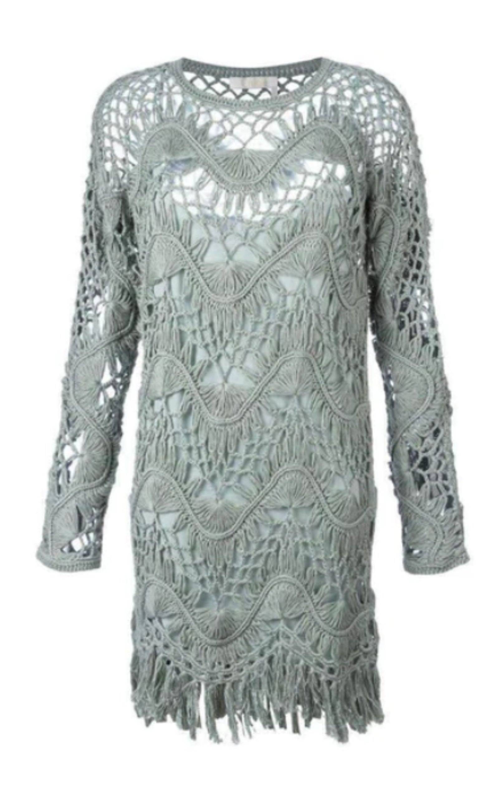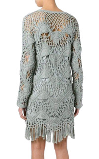 Light sea green cotton-silk blend fringed macrame dress Asymmetric hem. Composition: Cotton 60%, Silk 40% Lining Composition: 100% Cotton Round neck. Long sleeves. Fringe ends. Chemise included.