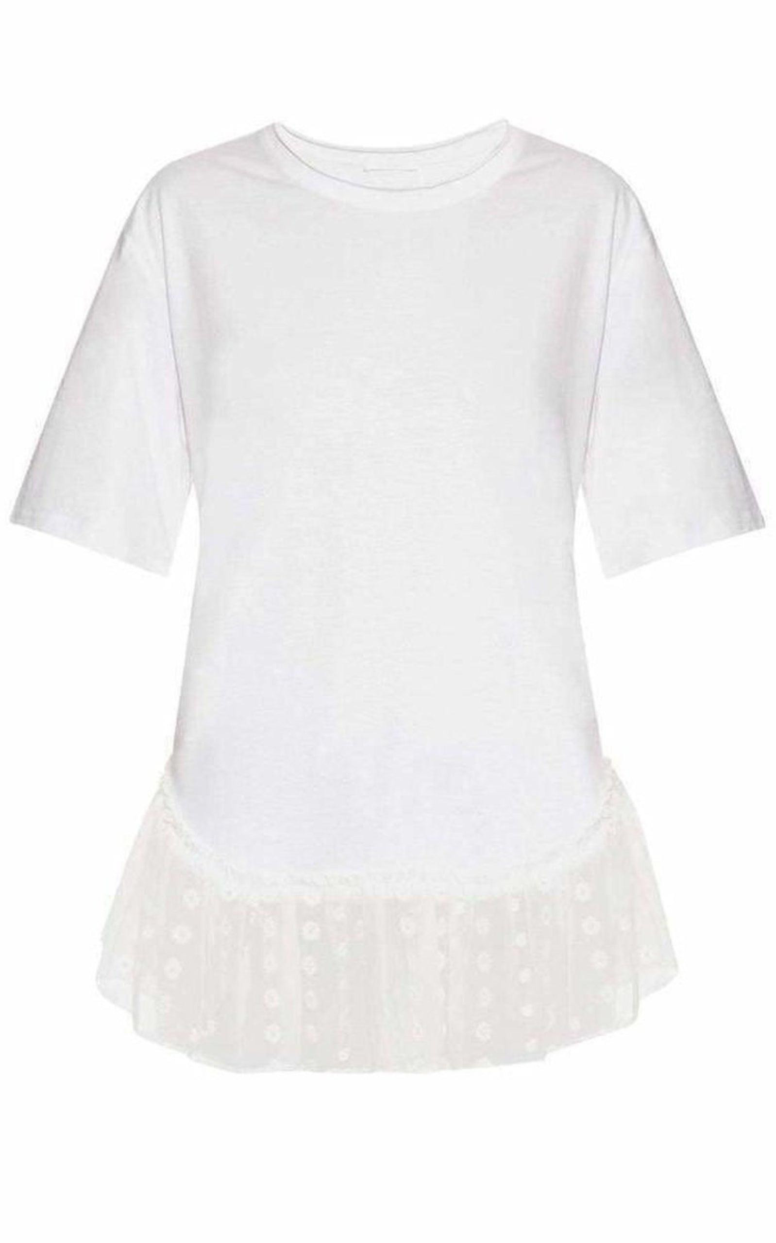 Lace Trimmed White Short Sleeve T-Shirt