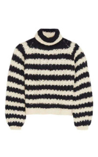 Chloé's turtleneck sweater is knitted from an ultra soft combination of silk, mohair and wool. Chunky without feeling weighty, it's cut for a slim fit with oversized sleeves. Dark-blue and cream silk, mohair and wool-blend Turtle neck Ribbed knit detailing Striped pattern and long sleeves Slips on 50% silk, 40% mohair, 10% wool Dry clean