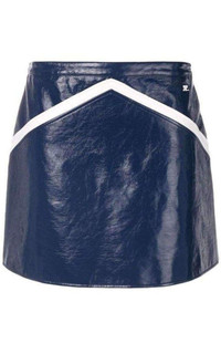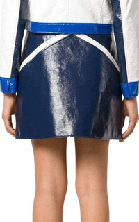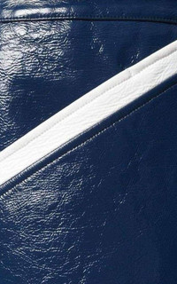 Textured vinyl fabric with a structured drape, thin satiny lining Concealed zip on the side Slit pockets hidden in the seams Made in Portugal Marine/ blanc 76% cotton 24% polyurethane Lining Cupro 48%, Acetate 52% dry clean Item fits true to size