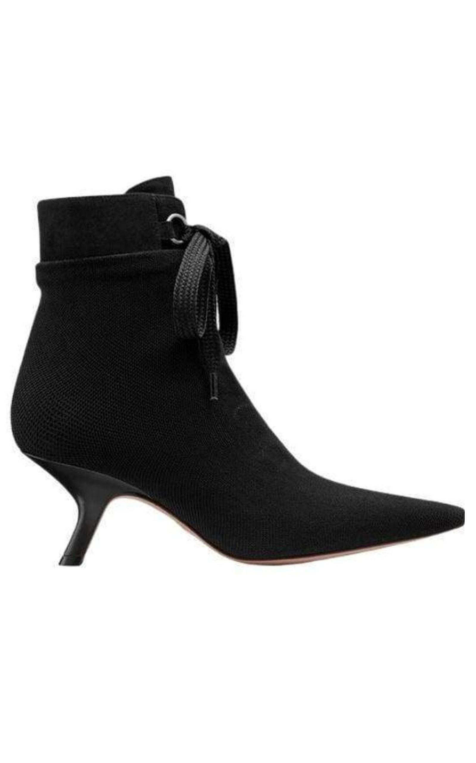 DD-Hide ankle boot in black suede calfskin covered with black stretch mesh Stretch Mesh & Suede Slip On Style Ankle Tie Fastening Kitten Heel Boot Heel Height: 2" Leather Insole And Outsole Made In Italy