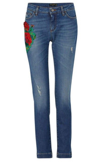 Blue cotton embroidery skinny-fit jeans from Dolce & Gabbana featuring a button fastening, a waistband with belt loops, a five pocket design, an embroidered floral design and a skinny fit. Composition: Cotton 98%, Spandex/Elastane 2% Embroidery: Viscose 50%, Polyester 45%, Polyamide 5%, Hand Wash Made in Italy