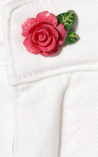 Made in Italy from stretch-cotton denim in an "Optical White" wash, the skinny-fit style has distressing through the legs and a pretty enamel rose button at the low-rise waistband. Material: 98% cotton, 2% elastane Five pockets Zipper fly, button fastening Belt loops Wash cold Designer colour name: Optical White Made in Italy
