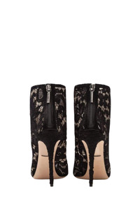 Featuring a peep toe, a rear zip fastening, an ankle length and a high stiletto heel, this pair brings a touch of opulence to your evening ensemble. Sole: Leather 100% Leather insole with logoed label Outer: Viscose 56%, Cotton 39%, Polyamide 5% Height 3.9" Heel 4.4" Made in Italy