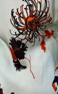Dries Van Noten midi dress in viscose satin with all-over multicoloured floral print. Layer the style over other pieces and mix it with different patterns to achieve a runway-inspired look. Shawl collar Long sleeves 100% viscose 37.5" length Dry clean