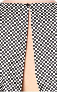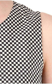 Introduce monochrome checks into your wardrobe with Dries Van Noten's striking dress. With an open keyhole back and peplum waist, it strikes the perfect balance between edge and elegance. Zip and button fastenings at back Sleeveless, round neckline, keyhole open back, peplum waist, all-over checked print, flared skirt 100% silk Dry clean True to size