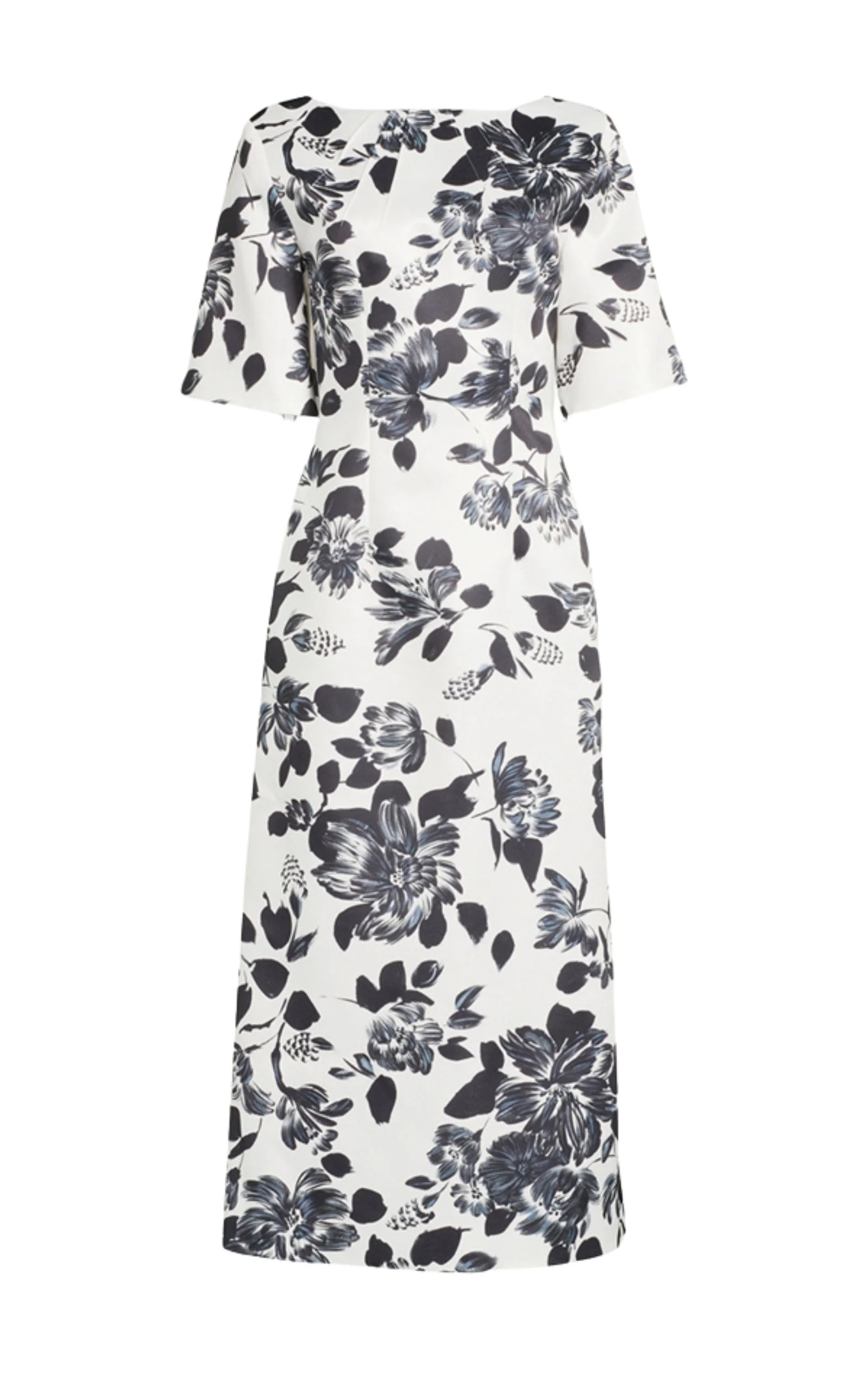 Emilia Wickstead – Kora Floral-print Twill Midi Dress The Kora midi dress by Emilia Wickstead is a timeless expression of feminine sophistication, beautifully tailored in the United Kingdom. Crafted from lustrous twill, this short-sleeve design showcases a refined monochromatic floral motif, making it a chic option for summer weddings, garden parties, and elegant soirees. Key Features & Details Elegant bateau neckline with a refined silhouette Short sleeves with a tailored finish Monochromatic floral print in white, black, and gray Pintucked detailing for a structured yet feminine touch Scoop back design for added elegance Concealed back zipper closure Fully lined for comfort and flawless draping Product Description The Emilia Wickstead Kora midi dress embodies modern romance with its clean lines and graceful floral motif. A bateau neckline and scoop back balance modesty and allure, while pintucked details highlight the brand’s precision tailoring. Its polished midi length and lustrous twill fabric ensure a refined look that transitions seamlessly from daytime gatherings to evening celebrations. Material & Construction Fabric: 100% Polyester Lining: 100% Polyester Color: White, black, and gray floral motif Machine washable for easy care Made in the United Kingdom Authenticity & Condition 100% authentic Emilia Wickstead Brand new, never worn Why Shop with Runway Catalog? At Runway Catalog , we curate the world’s most coveted designer pieces at exceptional prices. Every item is guaranteed authentic, offering you timeless luxury with lasting value. Have questions about us? Read our FAQ