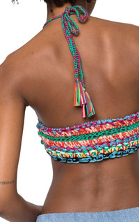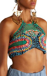 This cropped top is hand-crocheted from cotton in a vibrant color palette and has tasseled halterneck ties. Wear yours with a slip skirt. Multicolored viscose-blend Button fastenings through side, ties at neck Composition: Viscose 53%, Polyamide 35%, Cotton 12% Made in Italy