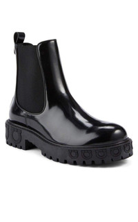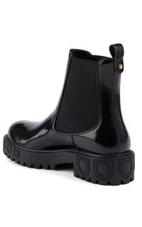 Classic chelsea-boot style meets with signature Salvatore Ferragamo luxury. With a glossy finish and logo detailing, they're an update to the easy, slip-on silhouette. Leather: Calfskin Glossy finish Textured logos Chelsea boots Chunky heel Platform profile Rubber sole Heel: 1.75" / 42mm Platform: 1.25" / 29mm Style #FERRG31498 Made in Italy