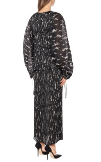 This artfully pleated maxi dress is made in Italy from lightweight fabric, which is illustrated with a monochromatic floral print. Allows its breezy allure to add sophistication to any occasion. self-tie cuffs Designer colour name: Black/White Loose fit, elasticated waist Lightweight material Material: 100% polyester Lining: 100% silk, partially lined Concealed zipper True to size Dry clean Made in Italy