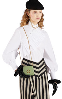 This Blondie medium chain wallet is designed with a geometrically shaped version of the Interlocking G logo. Moire lining Round logo Internal card slots Button closure. Composition: 100% Calf Leather Inner Layer: Fabric Other elements: Metal Dimensions: 12.5cm x 11cm x 2.5cm Made in: Italy Have Questions about us, read our FAQ