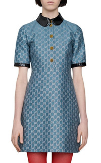 Blue GG Lamé Dress With Detachable Collar