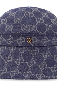 Gucci Blue Monogrammed Bucket Hat -cotton-blend with all-over GG logo. Round crown Dropped brim Front logo plaque All-over GG motif Composition: 70% Cotton, 30% Polyester Color: Blue Brim width: 6cm / 2.4" Size S/56 cm Size M/57 cm Made in Italy Have Questions about us, read our FAQ