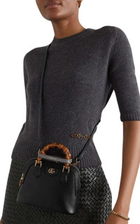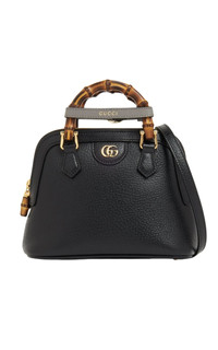 The black leather Gucci Diana Mini Tote features shiny aged gold detailing. It comes equipped with two decorative straps to help maintain the shape of the handles, as shown in the photo. The microfiber lining has a luxurious faux suede finish, and there are double-G closures for added elegance. Inside open pocket Bamboo handles height 4.5 cm Removable and adjustable shoulder strap height 55 cm Mini size: W 20 cm x H 16 cm x D°8.5 cm Made in Italy