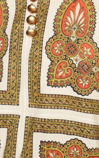 This neutral Gucci floral cotton kaftan dress is crafted in Italy and features a short length, gold and brown paisley print, gold tone buttons at the round neck, a relaxed silhouette with a drawstring waist and wide sleeves. Everything is A-bouquet thanks to this Gucci kaftan. Round neck Batwing sleeves Asymmetric hem Floral print Composition: Cotton 100% Made in Italy
