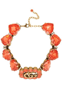 Flat curb chain necklace in antiqued gold-tone. Crystal-cut detailing in Pink and white throughout. Logo hardware at drop. Lobster clasp fastening. Metal with aged finish Pink heart-shaped crystals Composition: Crystal, Antiqued gold-tone brass Adjustable length from 12.6"/32 cm to 16.5"/42 cm Designer Style ID: 627772I4769 Made in Italy