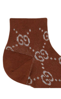 Metallic woven GG socks Cotton-blend elasticated ankle Embroidered design GG supreme embroidery Composition: Cotton 65%, Polyamide 20%, Viscose 13%, Metallic Fibre 2% Made in Italy