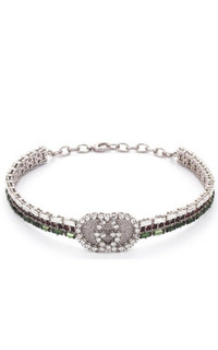 Green Crystal-embellished Tennis Gg Choker