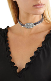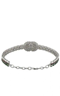 Gucci pays homage to its roots with this tennis choker which features the iconic Web stripe in rows of green, red and white crystals. Expertly crafted in Italy, it is complete with the house's interlocking GG at the center which is encrusted with white crystals for a striking finish.