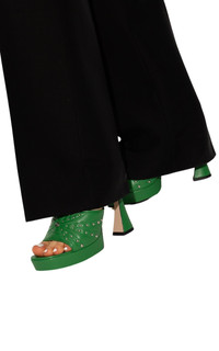 Green mules from Gucci. Made of leather, this model sits on a pink leather sole and showcases studs and silver-tone logo hardware. Composition: Leather Inner Layer: Leather Sole: Leather Sole height: 1.18"/3cm Sole height at the highest point: 5.1"/13cm Made in Italy