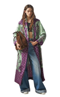 Gucci Green Paisley Print Silk Robe This Gucci Women's Green Paisley Print Silk Robe is a statement piece showcasing an intricate paisley pattern in purple and mint green. Made in Italy from 100% silk, this robe exudes timeless elegance and comfort. Features: Paisley print in purple and mint green Premium 100% silk construction Peak lapel and chest pocket for classic styling Two front pockets for added functionality Detachable self-tie belt for versatile wear Folded creases for a refined finish Length: 100 cm based on a size 42 (IT) Colour: Green, Purple Made in Italy Why You'll Love It: Whether worn as an elegant robe or styled as a statement layering piece, this Gucci silk robe combines luxurious texture with bold design. Its sophisticated paisley pattern and impeccable tailoring make it a standout choice for any wardrobe. Authenticity & Condition 100% authentic Brand new, never worn Why Shop at Runway Catalog? At Runway Catalog , we specialize in authentic luxury fashion at up to 80% off MSRP. Every piece is verified for authenticity and quality, ensuring you receive only the finest designer styles with exceptional value. Have Questions? Visit our FAQ section to learn more about sizing, authenticity, and worldwide shipping.