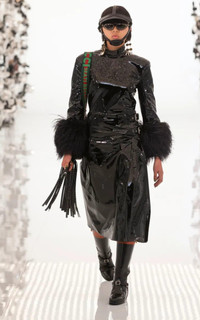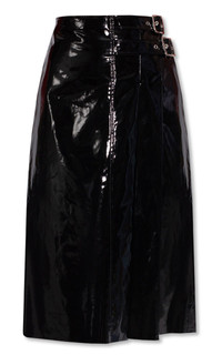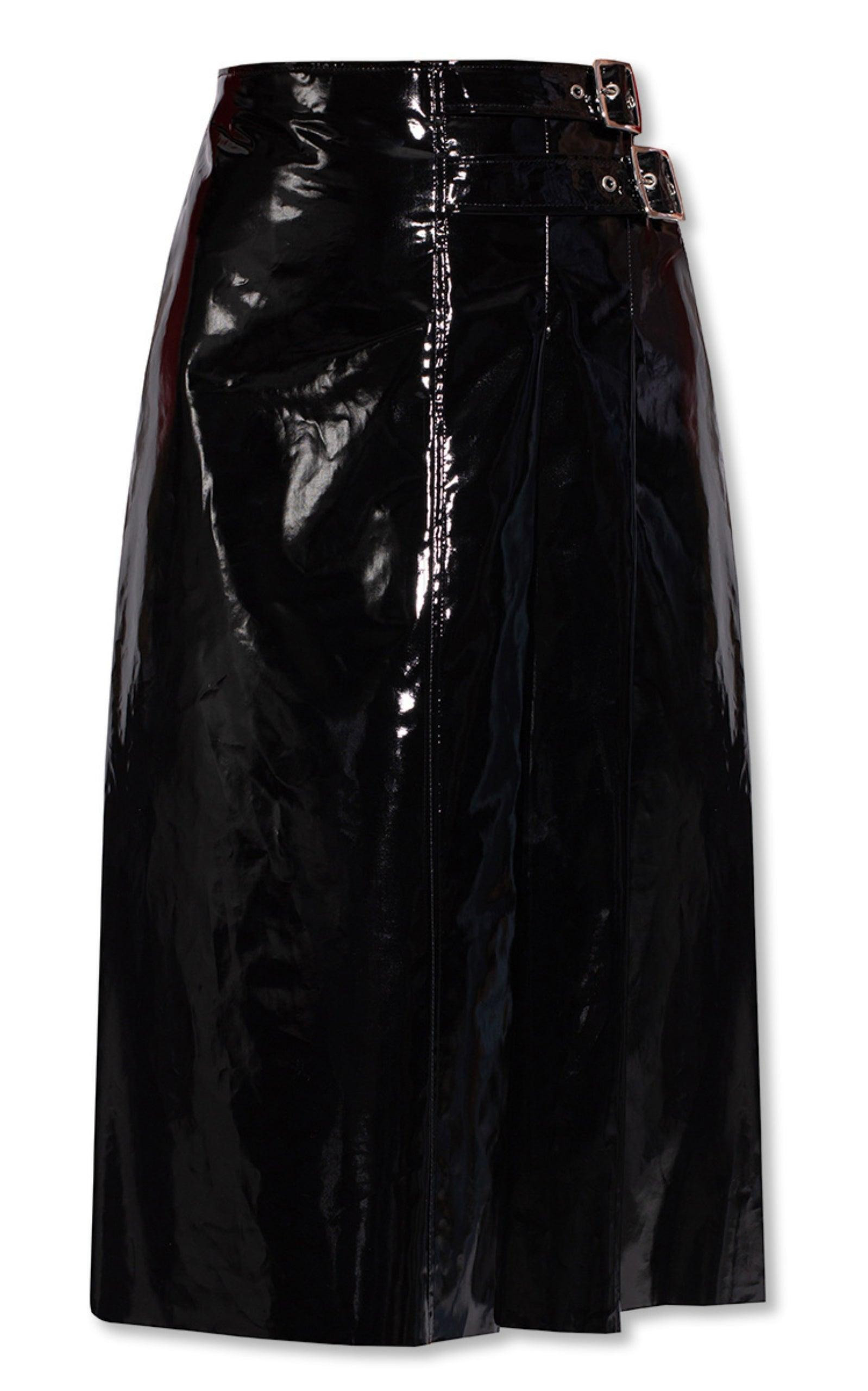 A-line skirt Black vinyl effect fabric Buckles detail at the side Mid-length Zip closure High-shine effect Composition Vinyl 100%, Fabric 100% Made in Italy