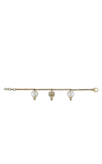 Contrasted by a spiked stud, a glass pearl combines with the crystal Interlocking G detail, forming sparkling pendants that complete this chain bracelet in shiny gold-toned metal. Metal with gold finish Glass pearls Interlocking G with crystals Clasp closure Pearls: 14mm Made in Italy