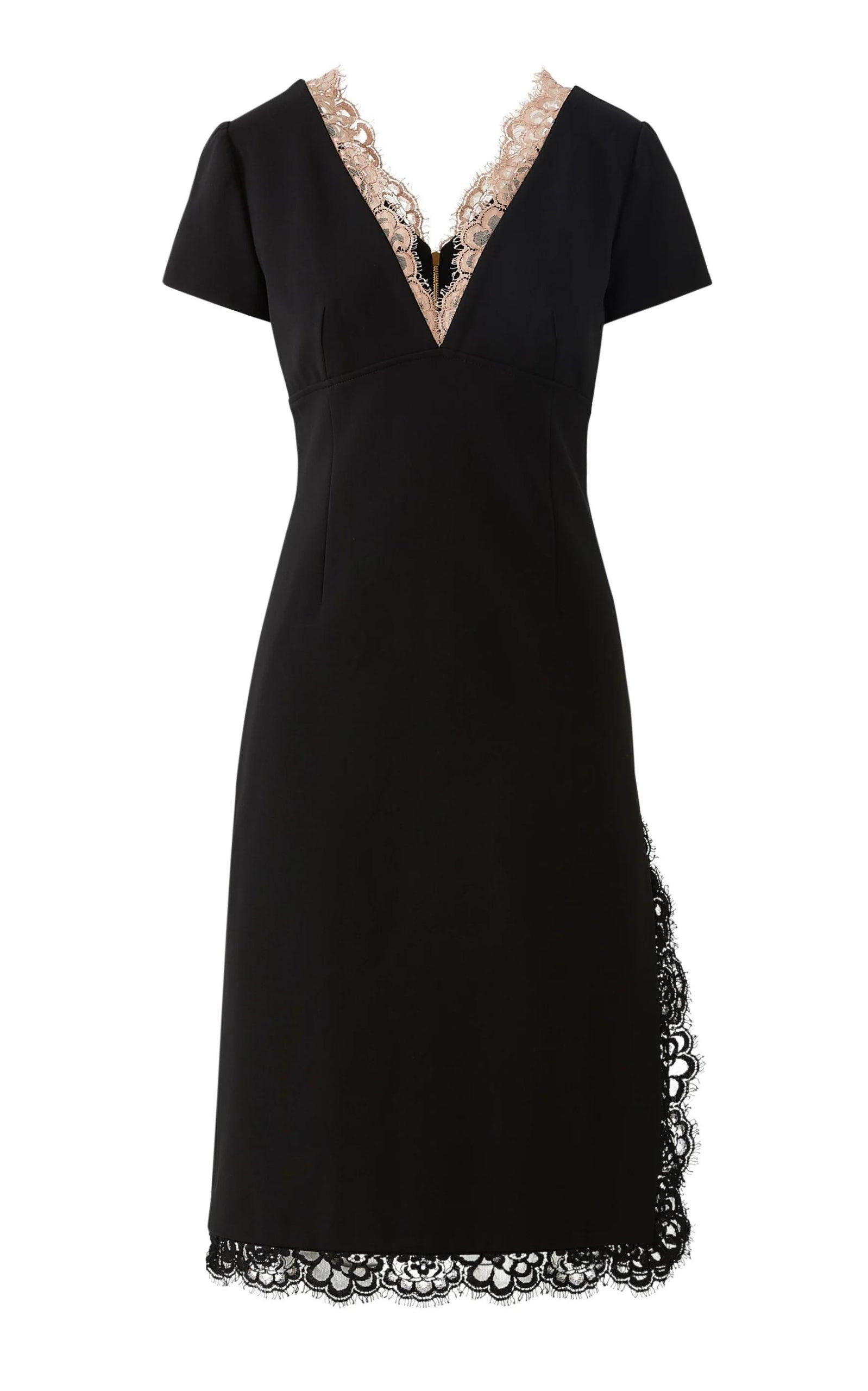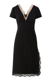 This dress is crafted from black stretch viscose, and it is enriched with lace trims. Black stretch viscose Lace trims Interlocking G zip puller Deep v-neck Short sleeves Fabric: 75% Viscose, 17% Polyamide, 8% Elastane. Lining: 73% Acetate, 27% Silk. Lace: 62% Cotton, 21% Viscose, 17% Polyamide. Made in Italy