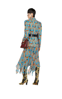 Gucci updates this classic midi skirt with one of its emblematic motifs. Printed all over the blue silk construction, the GG Supreme adds to a contemporary look. Signature GG Supreme print Logo waistband Rear slit Hgh-waisted Composition: 100% Silk Made in Italy