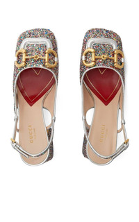 Silver-tone Crystal embellishment Signature Horsebit detail Square toe Buckle-fastening slingback strap Mid block heel Heel: 3"/7.7cm Composition: Crystal, leather Lining: Leather 100% Sole: Leather 100% Made in Italy.