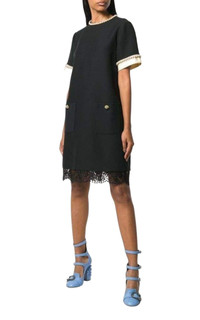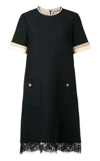 Crafted from silk-blend, this dress features a round neck, short sleeves, a shift silhouette, front pockets, a lace-trimmed hem and faux pearl embellishments Faux-pearl strands adorned crowns worn by royalty Sscalloped lace hem Back zip closure Jewel neck Short sleeves Front patch pockets Partially lined Wool 51%, Silk 49% with 100% silk trim Lining: Cotton 80%, Polyamide 20% Designer Style ID: 523330ZLZ90 Dry clean Made in Italy