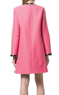 This velvet trim dress is a perfect pop of colour for your next evening event.Crafted from a luxury bubblegum pink wool-silk blend, this Gucci dress features a round neck, a back zip fastening, long sleeves, a flared style and is decorated with a velvet and crystal weave style trimming to the neckline and cuffs for added feminine edge. Composition Wool 51%, Silk 49% Lining: Acetate 71%, Silk 29% Designer Style ID: 494948ZKK37 Made in Italy