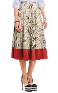 This pleated midi skirt is expertly crafted from tonal-gray and red snake-effect leather with a silk-crepe lining. Multicolored leather Concealed hook and zip fastening at side 100% leather (Lamb); Lining: 100% silk Specialist clean Made in Italy