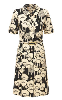 Gucci dress made in a stretch jersey fabric featuring a contrasting ivory poppy flowers print set against a black background. Point collar Short sleeves Adjustable waist-belt Button-through patch pockets and front button closure Composition: 93% viscose, 7% elastane Dry Clean Only Made in Italy
