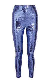 Made from tulle, these leggings are saturated with iridescent purple sequins that appear to dance beneath light. Purple sequined tulle Concealed hook and zip fastening at back 100% polyamide Dry clean Made in Italy