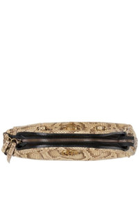 The Double G embellishes one side while the other portrays the feline head. Natural yellow python. Antique gold-toned hardware. Double G. Metal feline head. Interior open and smartphone pockets. Detachable shoulder strap with 55cm drop. Zipper closure. Small size: W29cm x H18cm x D7cm. Composition: Metal 100%, Python Skin 100% Lining: Suede 100% Designer Style ID: 524620LWI0T Made in Italy.