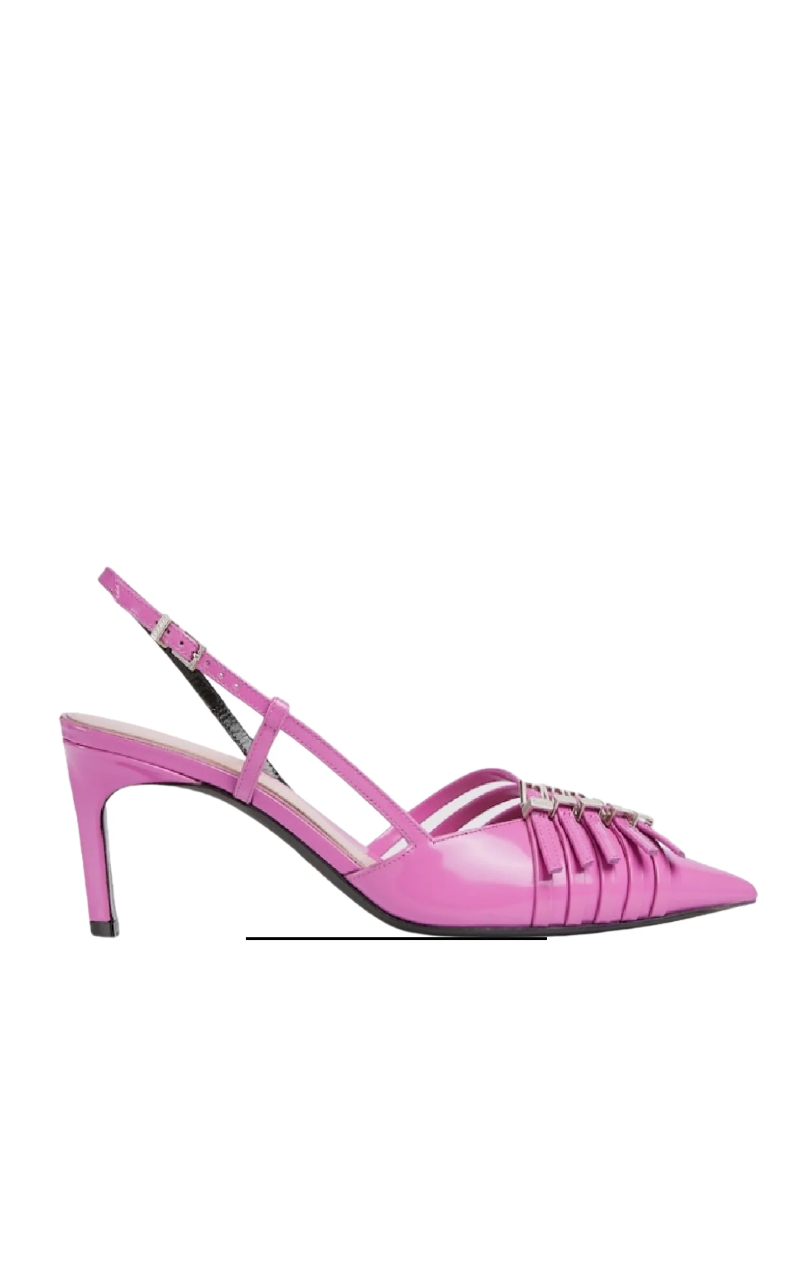 Adjustable slingback strap for a flexible fit Pointed toe Buckled strap detailing at vamp 2.5" stiletto heel Leather upper Lining: Leather Sole: Leather Fits true to size Made in Italy Authenticity guaranteed.