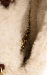 This shearling super mini marmont bag has a softly structured shape defined by brown diagonal quilted leather and a beige merino wool trim. The sliding chain strap can be worn multiple ways, changing between a shoulder and a top handle bag. The flap closure is complete with Double G hardware. Brown diagonal quilted leather Beige merino wool trim Gold-toned hardware Attached key ring that can attach to a separate bag Double G Chain shoulder strap with 23.6" drop Super mini size: 6.2"W x 4"H x 1.7"D Fits up to iPhone Pro, card case, and lipstick Made in Italy Have Questions about us, read our FAQ