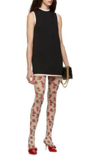 The Gucci Strawberry Logo Horse-bit Tights in White is crafted from a soft, durable polyamide blend in Italy. This pair of sheer tights features the horse-bit pattern combined with the playful Gucci Strawberry print, and a solid off-white elastic waist band. White Strawberry Logo Horse-bit Tights Red, yellow, and green accents 60% polyamide, 29% polypropylene, 1% elastane Sheer, full length tights Horse-bit and strawberries pattern Gucci name throughout Elastic waistband Size S: 145-155cm/ 75-85cm Polyamide/polyester/elastane Made in Italy